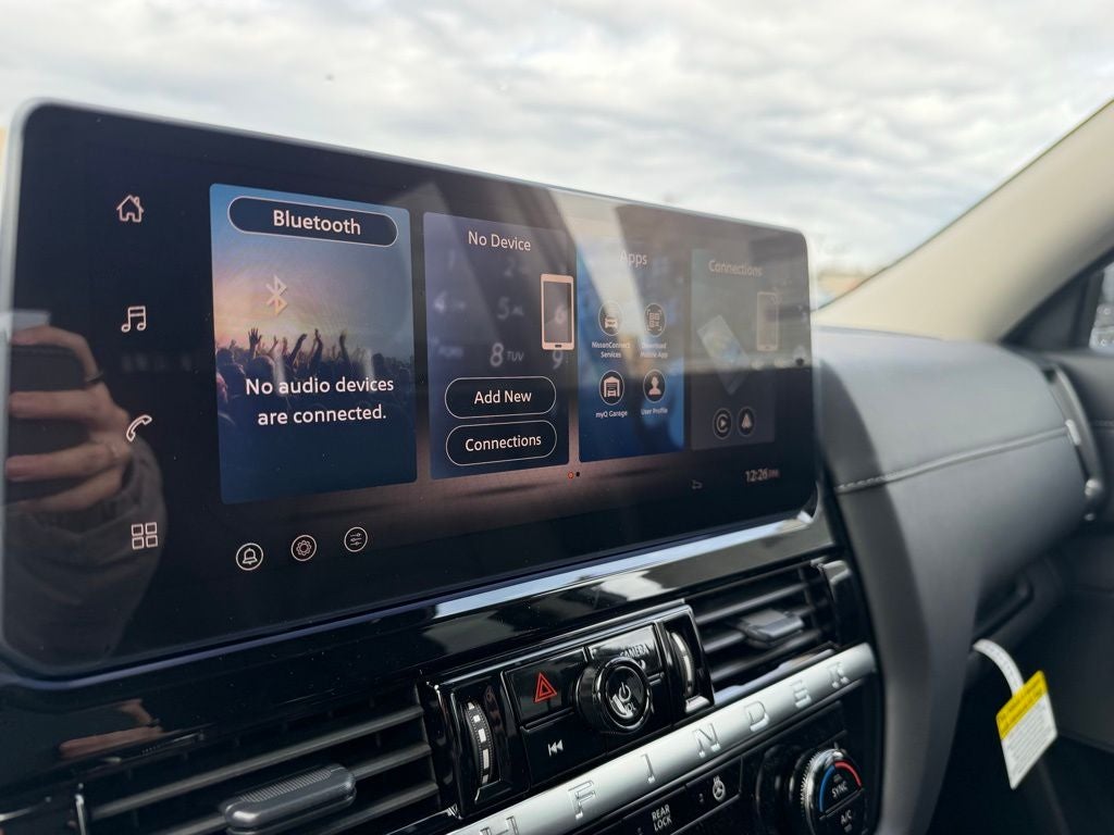 - Radio: AM/FM Audio System w/NissanConnect -inc: 6 speakers, 5G Wi-Fi hotspot, wireless Apple CarPlay and Android Auto, 12.3" multi-function information display, SiriusXM satellite radio, 2 front USB connection (1 type C charge and data ports), Bluetooth® hands-free phone system, streaming audio and messaging and hands-free text messaging assistant