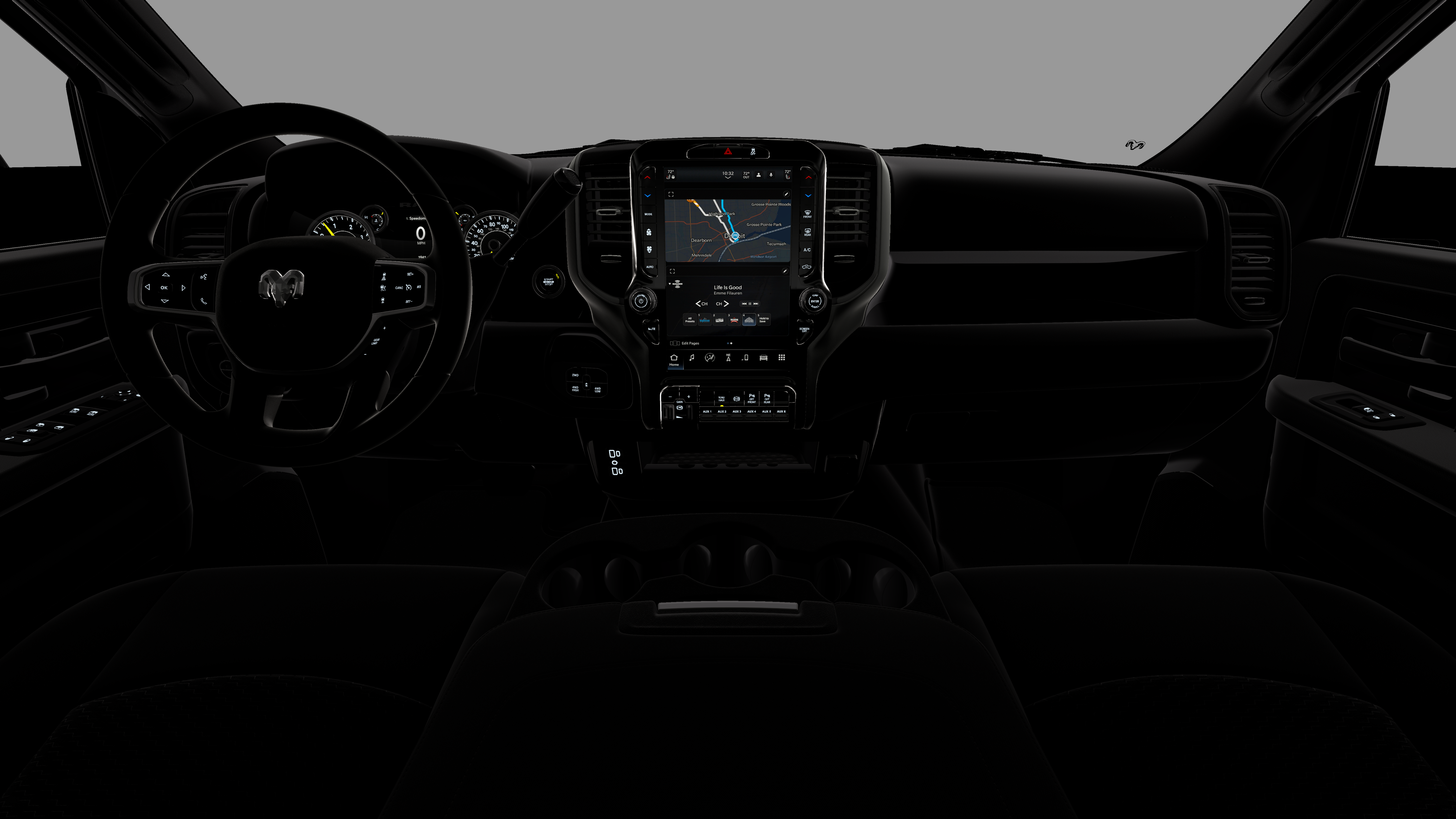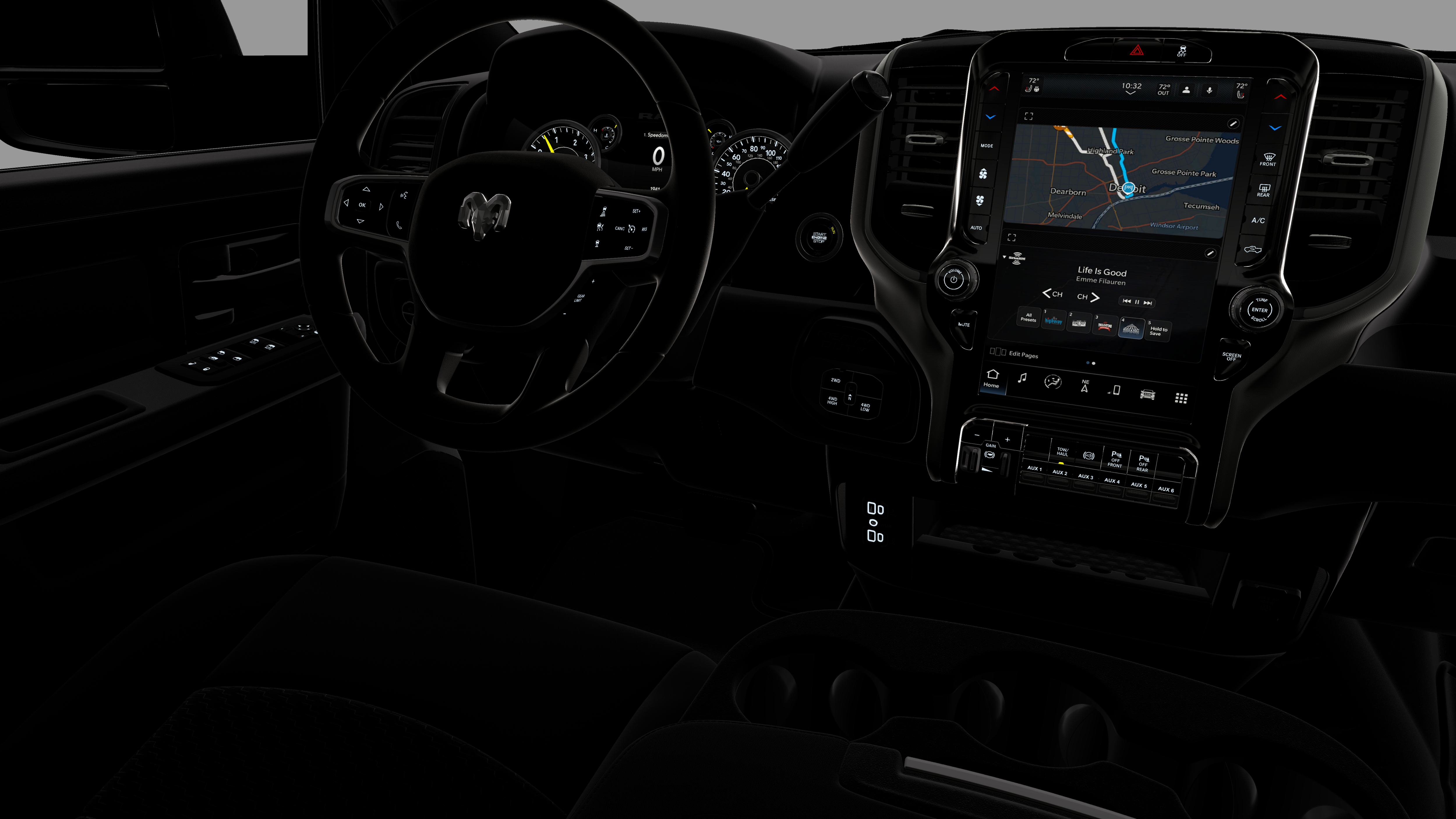 - Radio w/Seek-Scan, Clock, Speed Compensated Volume Control, Aux Audio Input Jack, Voice Activation, Radio Data System and Uconnect External Memory Control