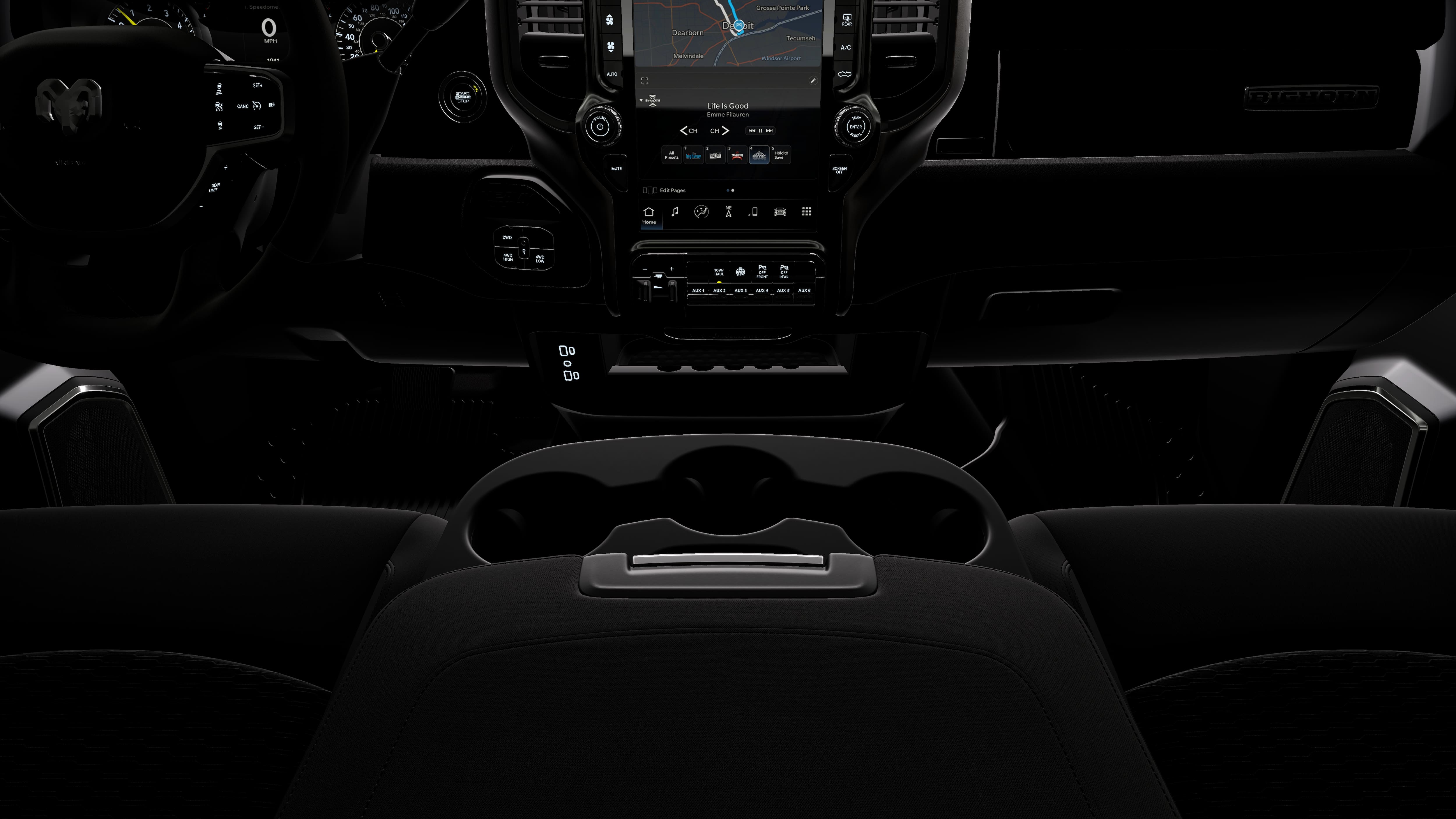 - Radio w/Seek-Scan, Clock, Speed Compensated Volume Control, Aux Audio Input Jack, Voice Activation, Radio Data System and Uconnect External Memory Control